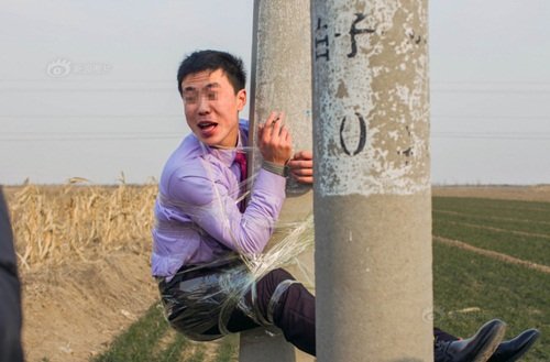 Mặc dù chỉ là một trò đùa nhưng cũng đã khiến chú rể chịu không ít khổ cực. Trời khá lạnh lại chỉ mặc một chiếc áo sơ mi, không được thân thiết cùng cô dâu còn bị trói chặt lên cột điện.