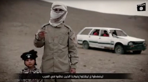 Đeo chiếc băng đô màu đen có logo của IS và mặc quần áo rằn ri, cậu bé 4 tuổi tuyên bố trước máy quay rằng "chúng ta sẽ giết những kẻ vô đạo đằng kia". Sau đó, Isa đứng cạnh xác chiếc xe đã bị thiêu rụi, giơ nắm đấm lên trời và hô vang "Thánh Allah vĩ đại".