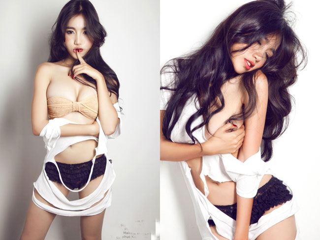 Elly Trần đã tạo dáng táo bạo cùng hành động xé áo vô cùng sexy.