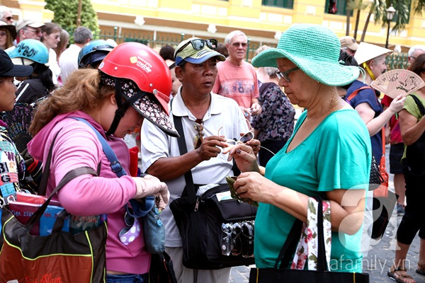 Tại khu vực Bưu điện TP.HCM, khi những đoàn khách nước ngoài vừa xuống xe tham quan thì lập tức xuất hiện "đội quân" bán hàng rong tìm mọi cách đeo bám, nài nỉ, chèo kéo người mua. Một hình ảnh không đẹp ngay giữa lòng trung tâm thành phố.