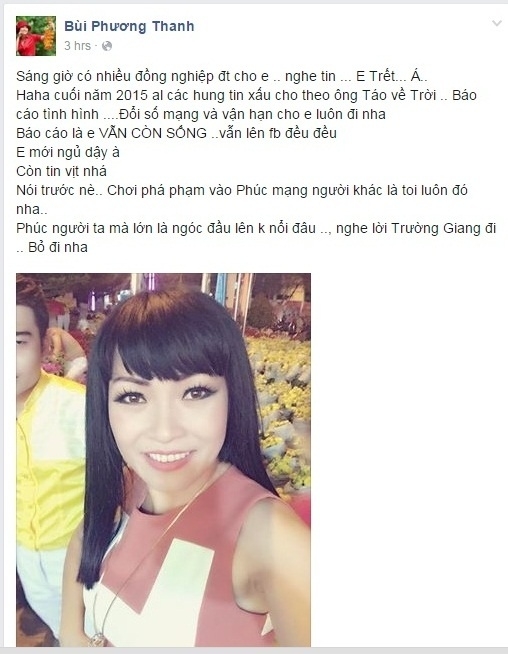 Chia sẻ của Phương Thanh trên trang cá nhân trước tin đồn qua đời.