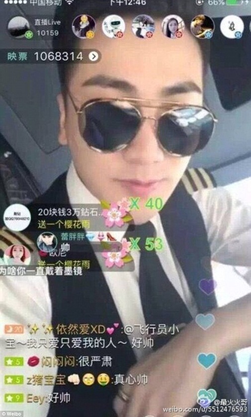 Những h́nh ảnh và đoạn clip phát sóng trực tiếp được đăng tải trên mạng xă hội Weibo ở Trung Quốc vào hôm thứ 6 cho thấy anh chàng phi công giấu tên đang trong bộ đồng phục, đeo kính đen đang quay trực tiếp h́nh ảnh của ḿnh tại buồng lái khi máy bay chuẩn bị cất cánh. Sau khi những h́nh ảnh này được công khai trên mạng xă hội, hàng ngàn fan hâm mộ anh đều ngợi ca chàng phi công trẻ đẹp trai, thậm chí c̣n gửi những món quà ảo tặng anh để thể hiện sự yêu mến.