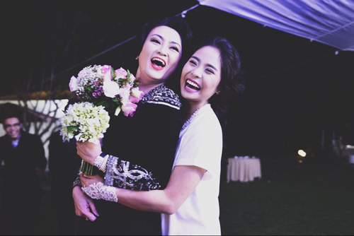 - Kỷ niệm th́ nhiều lắm v́ tôi gắn bó, gọi mẹ là mẹ từ khi vợ chồng tôi chưa cưới nhau. Nhiều lần tôi đi diễn, mẹ là người đưa tôi đi may đồ, chọn đồ thật đẹp. Trong đám cưới chúng tôi, mẹ tất bật lo toan, trang trí từ những chi tiết nhỏ nhất. Khi tôi lo phát khóc v́ sợ trời đất cứ mù mịt thế th́ lúc làm lễ cưới sẽ mưa to, mẹ là người nh́n tôi lâu nhất. Mẹ chắp tay lại thành tâm cầu khấn cho con cái được may mắn trong ngày trọng đại. Về nhà chồng, khoảnh khắc tôi cảm động nhất có lẽ là khi mẹ chồng tôi xuống tóc phát nguyện cho ông ngoại được khỏi bệnh. Khi đó tôi đă khóc không nín được. Đó cũng là giây phút tôi thấy thương mẹ nhất và nhận ra tôi rất yêu mẹ chồng ḿnh.