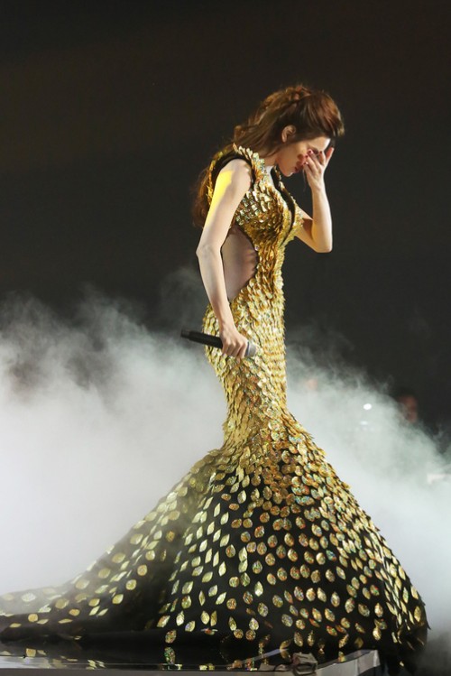 Khoảnh khắc xúc động của Hồ Ngọc Hà trên sân khấu.