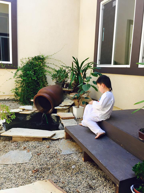 Con trai út Kenzi mỗi lần về nhà thăm bố đều thích thú chơi đùa trong không gian mang nhiều nét quê hương.