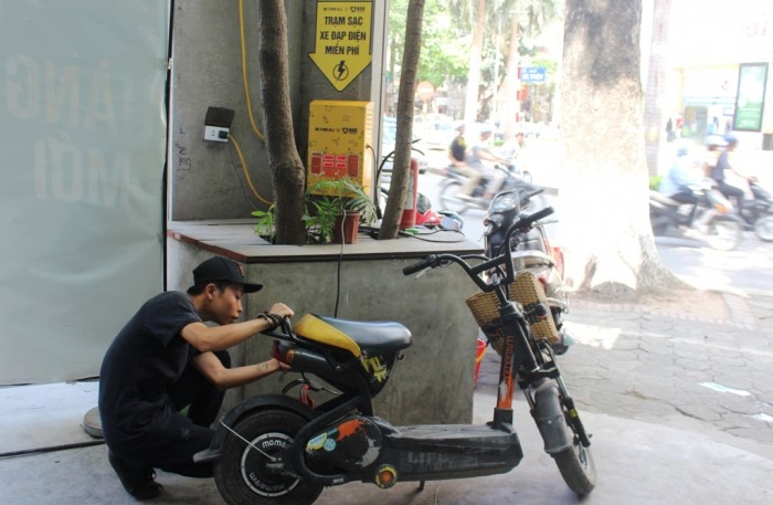 Vừa qua, tại Thủ đô Hà Nội đã xuất hiện những trạm cho phép sạc xe đạp điện miễn phí dành cho người đi xe đạp điện được đặt tại 3 địa chỉ: 133 Thái Hà, 18 Điện Biên Phủ và 308 Bà Triệu với đủ các loại đầu sạc của các dòng xe đạp điện khác nhau.