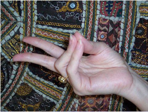 Đầu tiên, bạn ngồi tư thế hoa sen, hai bàn tay giữ thẳng, đặt ngửa trên đầu gối. Sau đó, chạm đầu ngón cái vào đầu ngón tay áp út rồi giữ chặt, những ngón còn lại giữ thẳng. Tư thế này có thể tập vào mọi lúc trong thời gian tùy thích.