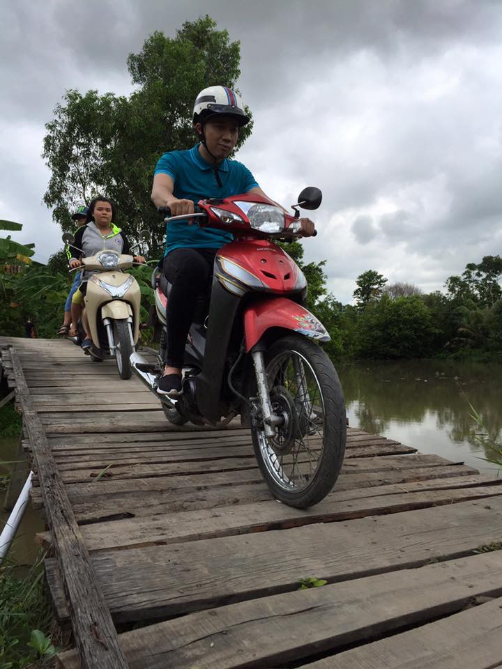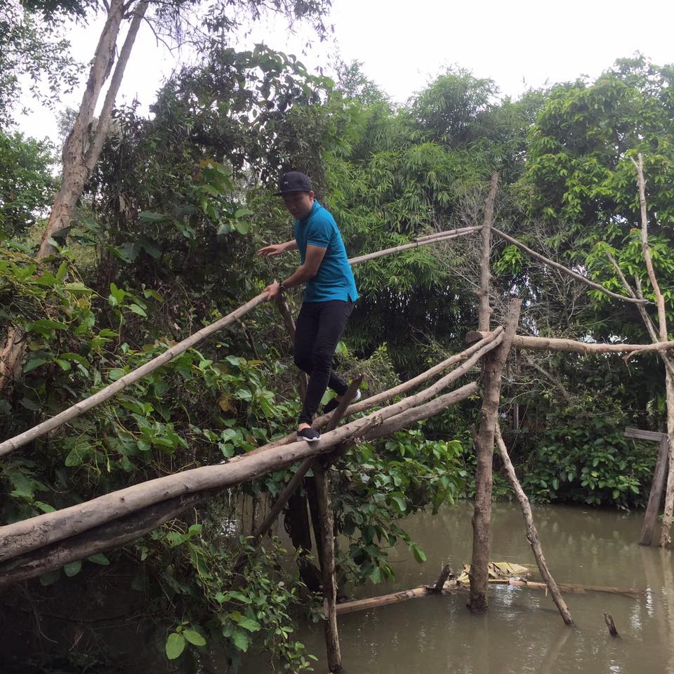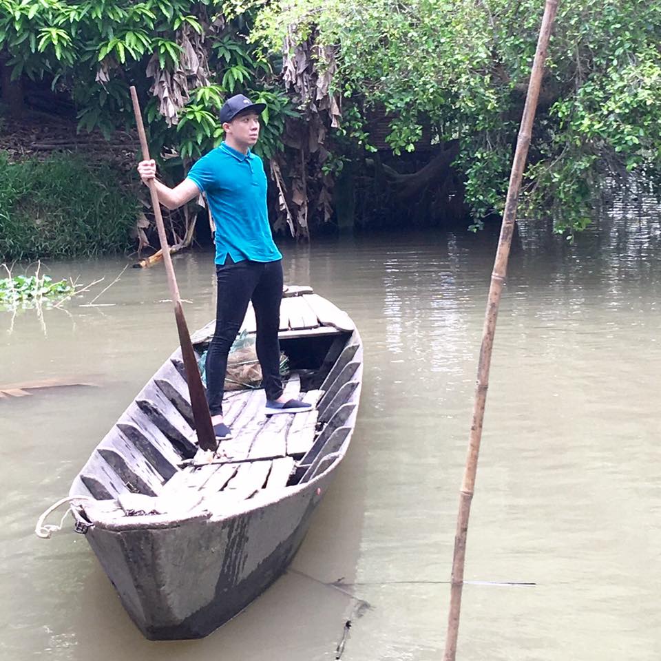 Hình ảnh anh chàng giản dị đi xe máy, trèo cầu khỉ, chèo xuồng… gây nhiều thiện cảm với fans hâm mộ.