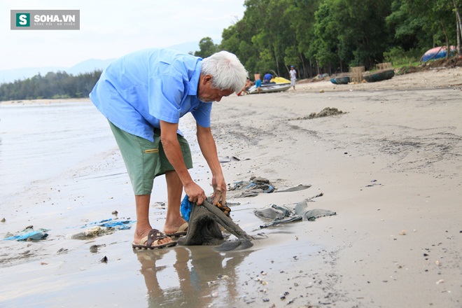 Rác thải trôi dạt vào bờ biển có đủ loại như bao ni lông, rong rêu, cây cối gãy mục, xác cá, động vật chết đã phân hủy… Cụ Mạo không hề ngại ngần mà thu gom tất cả rồi phân loại để đốt hoặc chôn lấp. Theo cụ Mạo, rác loại nào thì xử lý theo loại đó vì xử lý không đúng cách thì gây ô nhiễm lần 2.