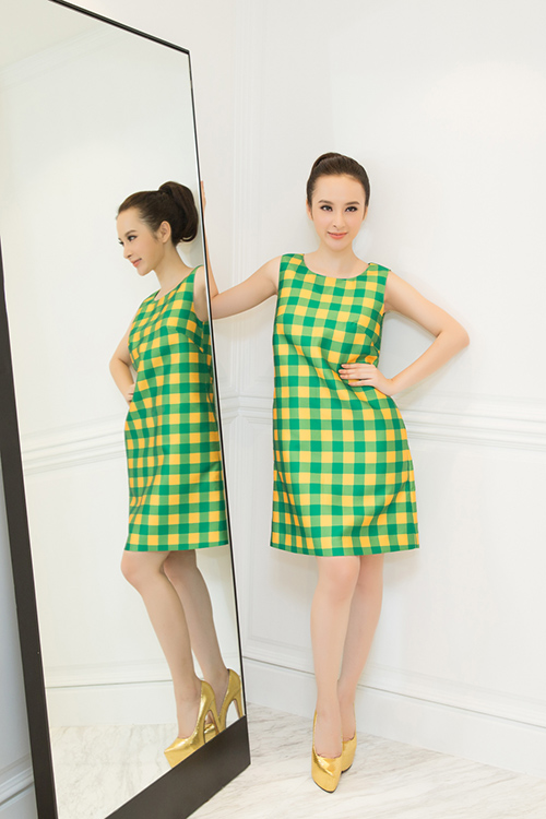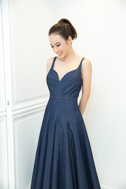 Angela Phương Trinh thử nhiều trang phục với chất liệu jeans, họa tiết caro, hoa cúc và những gam màu đơn sắc.