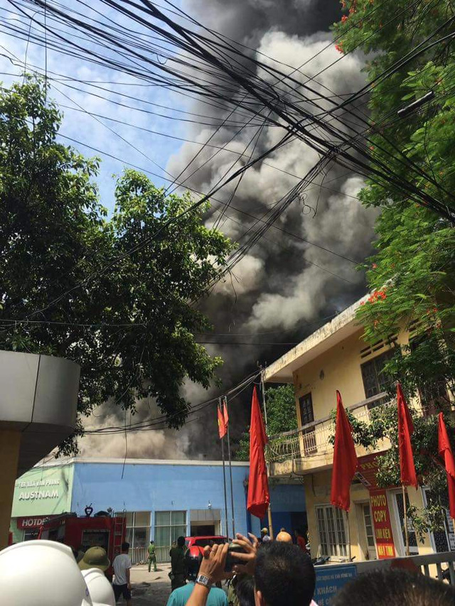 Đám cháy bùng phát dữ dội tại Công ty trách nhiệm hữu hạn xuất khẩu Hồng Hà, địa chỉ 109 Trường Chinh, Thanh Xuân, Hà Nội vào lúc 9h40 sáng nay, 17/6.