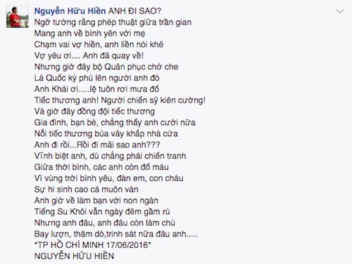 Khi nghe tin Anh Khải đã hi sinh. Lòng tôi quặn đau. Vì sao Anh ra đi? Tôi còn hận có thể đằng sau việc máy bay anh mất liên lạc, còn gì bí ẩn?