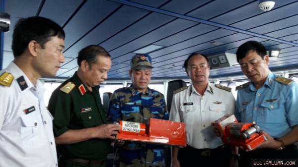 Phó đô đốc Phạm Ngọc Minh, Phó Tổng tham mưu trưởng Quân đội nhân dân Việt Nam cùng lực lượng của Sở chỉ huy trên biển Bạch Long Vĩ kiểm tra hộp đen máy bay CASA-21 - Vũ Hưởng.