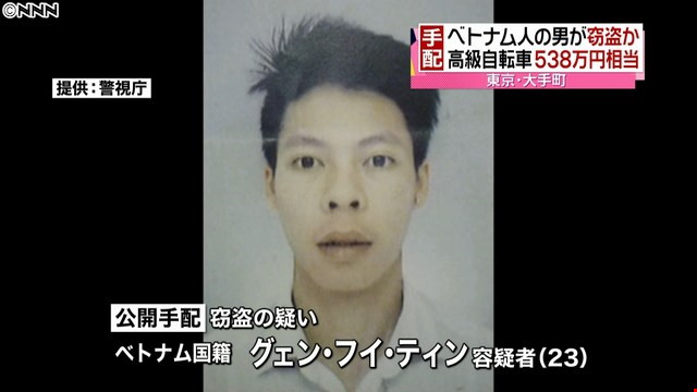 Tờ Nippon News Work đưa tinhôm 28-6, cảnh sát đã công bố các video về Nguyen Huy Tinh, công dân Việt Nam 23 tuổi, người được cho là trộm 47 chiếc xe đạp đua trị giá gần 5,4 triệu yen (hơn 52.000 USD).