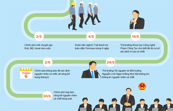 Diễn tiến điều tra cá chết. Đồ họa: Tiến Thành