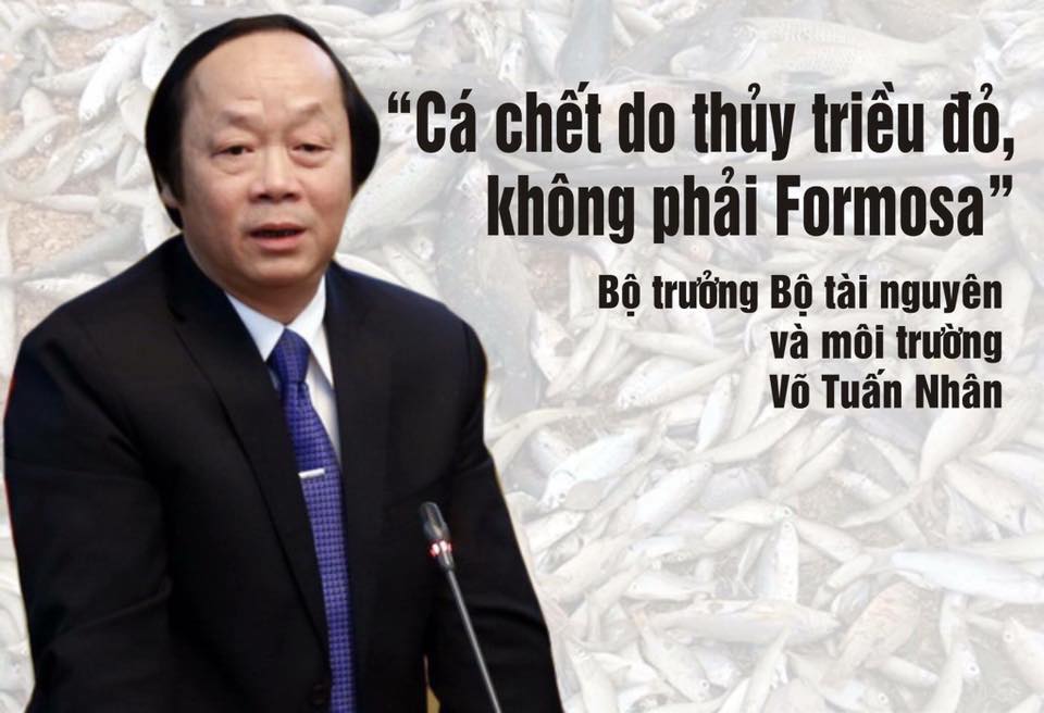 tui nghỉ những đứa đã trước đây bao che cho Formosa, nên ban cho tụi nó vài kí cá chết hoặc nước biển ở vủng áng cho tụi nó biết thân. Trước khi bắt tụi nó nuốt, hỏi tụi nó lại và quay phim coi chúng có thay đổi câu trả lời hay không; bị nhục như vậy, hy vọng tụi nó sẻ tởn tới già
