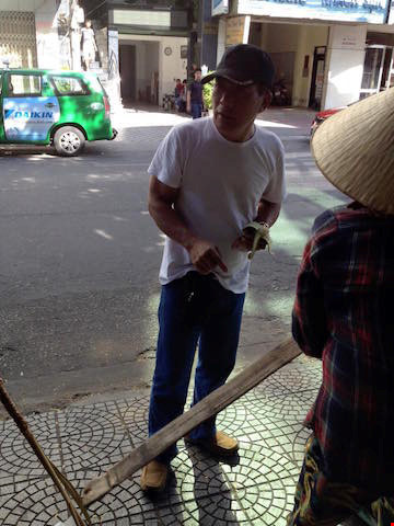 Mọi việc chưa dừng lại ở đó, khi người phụ nữ bán chuối đi người đàn ông Trung Quốc còn giật cả nón của chị, một người phụ nữ đi chung với người đàn ông này còn cố bẻ cho được một trái chuối trong nải chuối còn nguyên trên gánh.