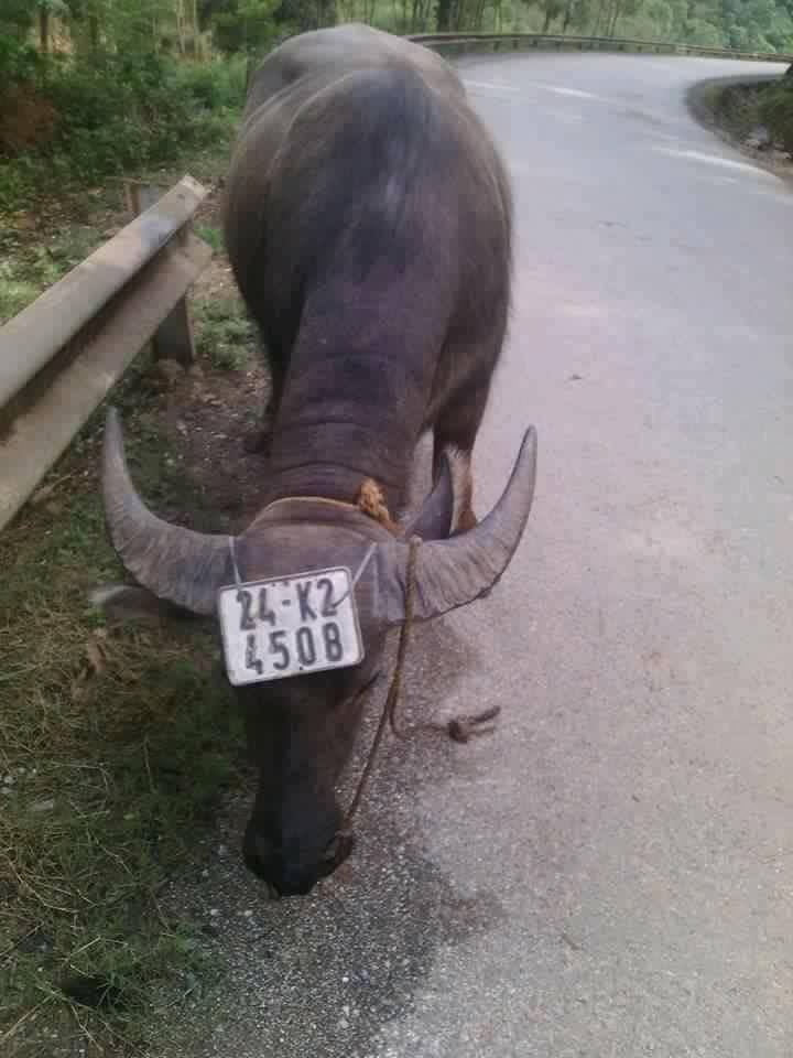 trâu ăn cỏ bên vệ đường cũng phải có bảng số chứ đừng nói tới xe, nay mai người dân bước ra đường đi bộ cũng đeo bảng số sau đít...hahahhaa