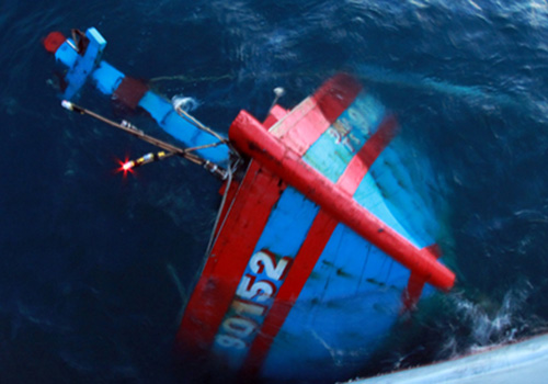 Tàu cá của ngư dân Đà Nẵng bị tàu Trung Quốc đâm chìm hồi tháng 5/2015. Ảnh: Nguyễn Đông.