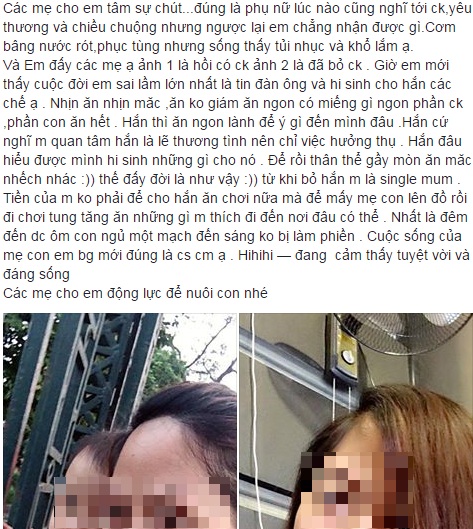 Mới đây, trên diễn đàn tâm sự dành cho chị em, người mẹ này đã chia sẻ về quyết định làm mẹ đơn thân. Có dịp được nghe chị tâm sự mới thấy rằng ở mỗi một hoàn cảnh người phụ nữ buộc phải đưa ra quyết định cho riêng mình.Chị kể chị lấy chồng hơn chị một tuổi cách đây 5 năm trong hai năm đầu vợ chồng chị rất hạnh phúc. Thế nhưng ba năm sau đó là chuỗi ngày mà sau này chị không hề muốn nhắc tới.