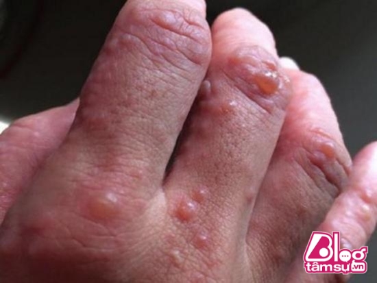 Không chỉ tay, rồi cả miệng, họng, má và chân cô đều bắt đầu xuất hiện các vết mẩn đỏ, mụn nước… Sau khi điều trị hơn 10 ngày, các vết đỏ trên tay cô đã khô lại, không loét ra như trước, các loại thuốc nhanh chóng có tác dụng giúp cô hồi phục sức khỏe .