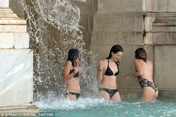 Đài phun nước ở Rome chấn động v́ màn ‘khoe thân’ dàn hotgirl mặc bikini siêu hot