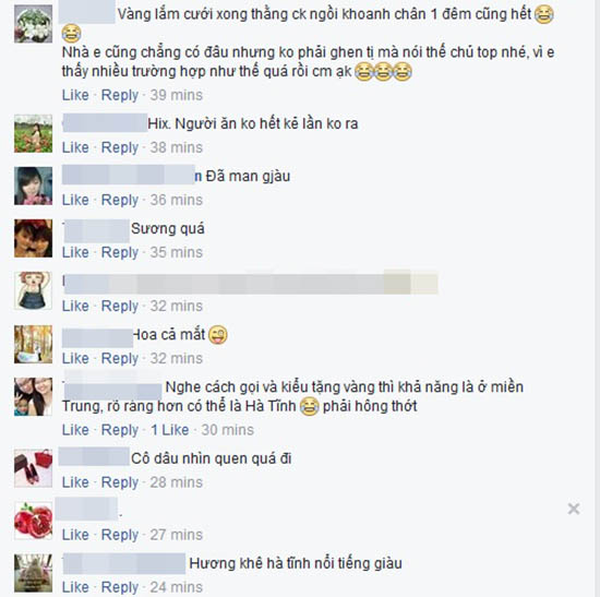 Ngay khi hình ảnh về đám cưới không có gì ngoài vàng này xuất hiện nhiều cư dân mạng đã để lại lời bình luận dí dỏm: " Nặng đến thế không biết cô dâu chú rể có mỏi cổ không nhỉ? Đúng là đám cưới của vàng, chỉ thấy vàng là nhiều.!"
