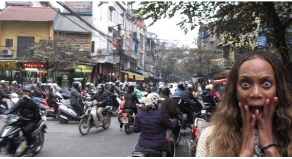 Nhiều người Việt bật cười trước cảnh khách du lịch Tây loay hoay tìm cách sang đường tại Việt Nam. Đúng là "cười ra nước mắt".