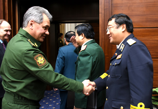 Chuẩn đô đốc Phạm Hoài Nam-Tư lệnh Hải quân Việt Nam trước cuộc hội đàm với Bộ trưởng quốc phòng Nga Sergei Shoigu trong một dịp gặp mặt (ảnh tư liệu, Hải quân Việt Nam)