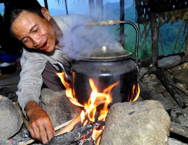 Suốt 40 năm, cha con anh Lang sống trên chòi lá hệt như “tổ chim” vắt vẻo trên thân chò già và hàng chục cây lồ ô cổ thụ chống đỡ bên dưới. Hàng ngày họ mặc quần áo bện bằng vỏ cây rừng, săn bắt thú, hái lượm và làm nương rẫy tự cung tự cấp lương thực sống qua ngày.