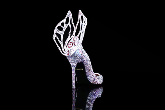 Giá trị của thiết kế không chỉ được xây dựng bởi nguyên liệu đắt tiền mà còn do cách thức chế tác cầu kỳ. Sau khi được định hình dáng, đôi giày được chuyển đến công đoạn định hình vị trí các loại đá. Sở dĩ công đoạn này được thực hiện sau nhằm không gây ảnh hưởng tới chất lượng cũng như độ lấp lánh vốn có của đá crystal. Bởi trong quá trình định hình, giày sẽ phải trải qua áp lực cao.