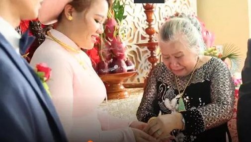 Được biết, đám cưới này diễn ra tại Pleiku (Gia Lai). Trong tâm trạng của những người trưởng bối trong gia đình khi chứng kiến cảnh đứa cháu gái bé bỏng lên xe bông về nhà chồng, ông bà ngoại của cô dâu đã vô cùng xúc động. Trước sự chứng kiến của gia đình và bạn bè của cô dâu chú rể, ông bà ngoại cô dâu đã tiến đến cầm tay và trao cho cháu gái tất thảy 10 miếng vàng lá, vừa đưa vừa nghẹn ngào: “Ngoại không có chi, ngoại cho con 10 cây”.
