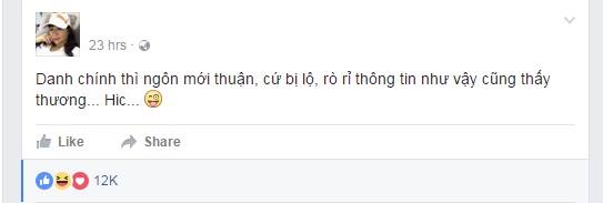 Trước những lời đồn bán tín bán nghi này, người vợ 'danh chính ngôn thuận' của vị đại gia kim cương đă đăng ḍng trạng thái hàm ư mỉa mai Hồ Ngọc Hà trên trang cá nhân:"Danh chính th́ ngôn mới thuận, cứ bị lộ, ṛ rỉ thông tin như vậy cũng thấy thương".